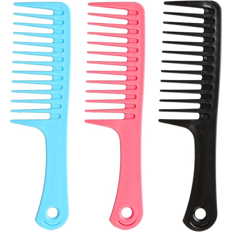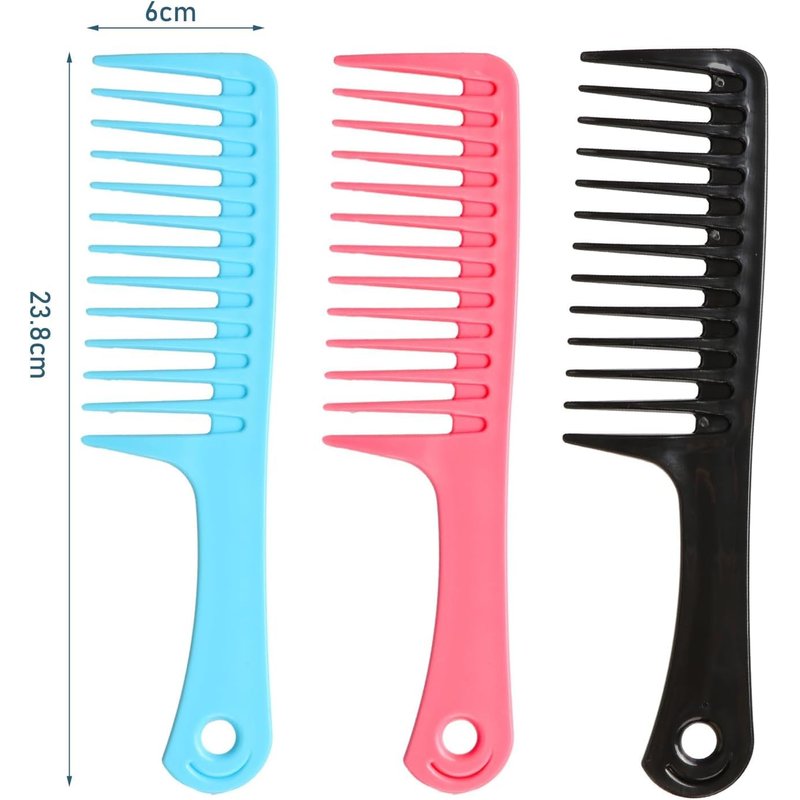 Specification: šSize:23.8cm Ć 6cm šColor:Blue,black,pink šMaterial:High quality plastic šQuantity:3 Ć durable wide tooth comb Feature: ā Wide tooth comb easy to carry,large tooth spacing makes it easy to clean. ā Hair comb are made of high quality plastic,anti static,durable,not easy to deform. ā Curl comb for curly hair,long hair,dry or wet hair,it can meet everyone's styling needs,suitable for all hairstyles.