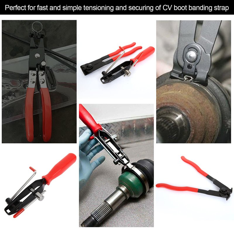 - đ§ăHigh-Quality Materialăcv boot clamp tool constructed from high-carbon steel with black-coated finish. super sturdy for installing CV clamps, standard banding tool for CV Joint.