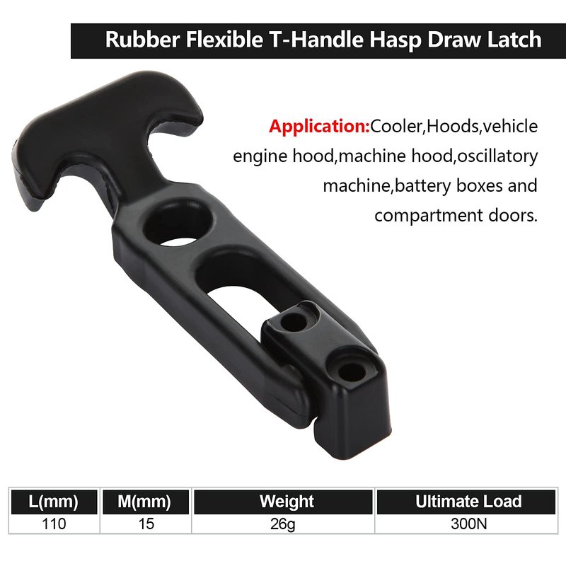 - Applications: Rubber draw latch mainly apply to use in automotive, trucks, tool box, cooler, golf cart, construction equipment, off-road vehicles, engineering machine hood, farm equipment, industrial machinery, and machine tools