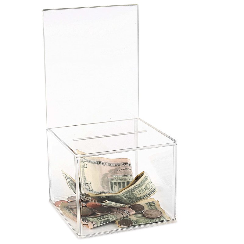 Acrylic Charity Donation Ballot box Fundraising Coin collection Tip box 5" x 5" x 4" office Suggestion Box Piggy Bank ticket bucket with 4" x 6" Sign Poster Display area(2 Pack)