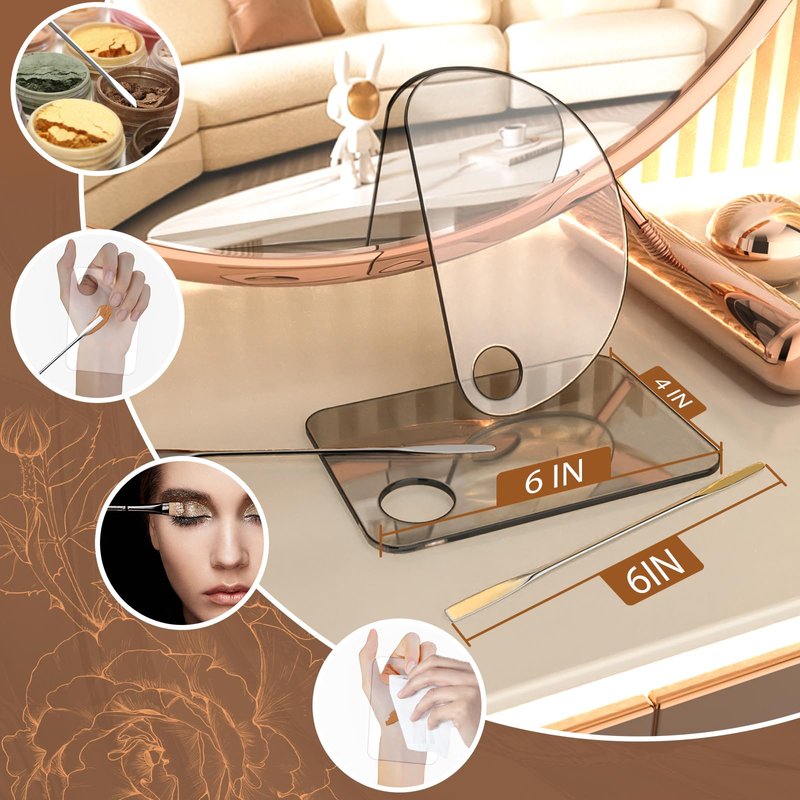 - 2【Acrylic + Metal】Acrylic cosmetic makeup palette is light, transparent, simple and practical, color display clear, beautiful, direct colorimetric. Friction-resistant, not cracked, not deformed, easy to clean and durable. Stainless steel spatula with double-ended design, made of high-quality stainless steel, super strong.