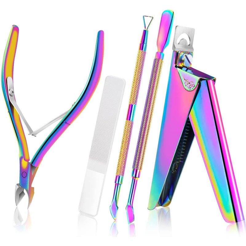 - 5 IN 1 Acrylic Nail Clipper Kit - Acrylic nail clipper kit can meet your different needs to do manicure pedicure at home. There is a 1pcs acrylic nail tips clipper, 1pcs cuticle trimmer, 1pcs cuticle pusher, 1pcs cuticle remover, 1pcs glass nail file.