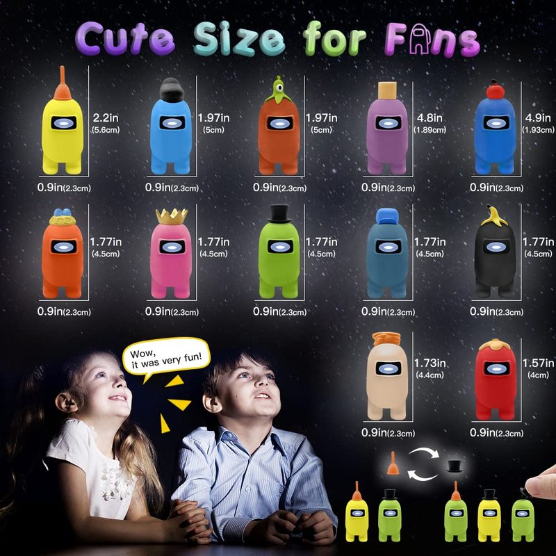 - đ¸ăAstronaut Game Figuresă: The twelve character playsets are made of premium PVC material. These colorful and interesting characters are approximately from 1.57 to 2.2 inches tall and represent miniature replicas between the characters. The small size can be placed in Christmas stockings or Easter eggs to surprise the little ones. The twelve characters allow enough small children to play together
