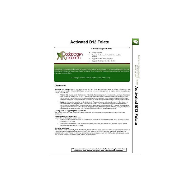Activated B12 Folate Lozenges Formula | High Potency Methylcobalamin Metafolin Folate L-5-MTHF | Bioactive Forms Vitamin B12 and Folate | 60 Fast-Dissolving Tablets |Adaptogen Research