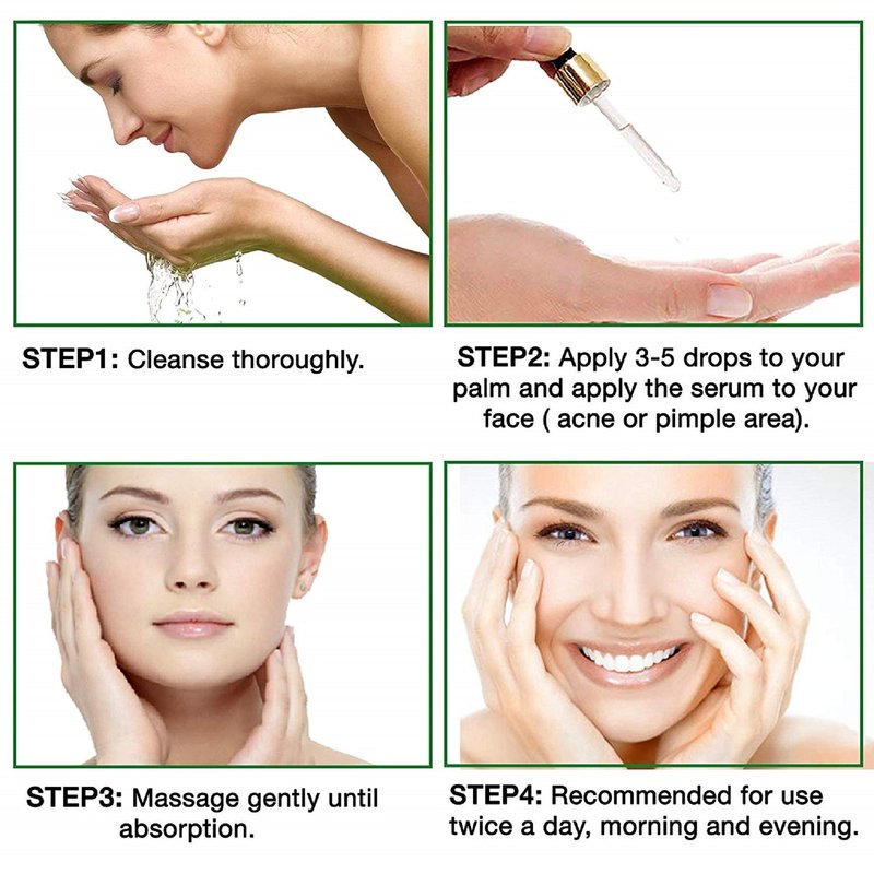 - DIRECTIONS - Please STORE in COOL/DRY place for long term formula effect. First do a Patch Test on a small area of skin on your neck to see if formula is a good fit & when you have sensitive skin. Wash and pat skin dry & apply a small amount to entire face and neck. Start using 3 to 5 days per week then increase twice a day OR as per your skin type + tolerance. Always avoid direct eye contact. Effective Tea Tree Oil for Acne Serum helps blemishes, fades acne, scars dark spots & anti-aging.