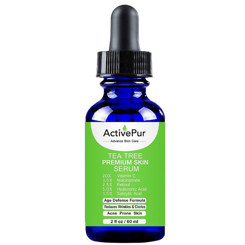 At "ActivePur" Brand, we offer (Double Size - 2 Fl Oz / 60 ml ) Premium Tea Tree Serum with a slight Tea Tree Oil smell. All our products are Formulated with Natural & Organic ingredients. Tea Tree skin serum oil helps blemishes acne scars, helps with the appearance of acne scars, dark spots. Tea Tree Serum with its active Vitamins plus tree plan extracts deeply nourishes and improves the overall health of facial skin on a long term basis. An indispensable nutrient for Tea Tree with Vitamin C blends with Niacinamide, Retinol Vitamin E and Hyaluronic acid in this advanced formula designed to target the most common signs of aging including firmness, fine lines wrinkles clearing, dark spots sun spots free of synthetic color additives, fragrance, and stabilizers, dynamic active botanicals like Tea Tree Salicylic acid facial serum combine in a silky smooth serum that can be used twice a day or as needed. Obtain Great Skin Condition from the Best Tea Tree Serum Supplement, Great Skins For Great Looks. Skin benefiting products made from the best formula. Tea Tree clear skin serum oil helps blemishes acne scars, and the appearance of acne scars, and dark spots. Their active plus tree plan extracts deeply nourishes, protects, and improves the overall health of facial skin and hyperpigmentation, acne-prone pimple, scar remover, retinol body lotion. With moisturizer spot and blackhead pigment corrector using salicylic acid, organics, retinoid, retina, under-eye retin, essential beauty, and vital signs of acne cure at vitamin shop & with naturals serums, night organic serum, exfoliant cystic. Best top-selling Tea Tree Oil Serum for Acne in the market.