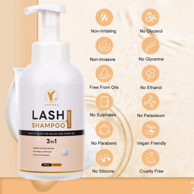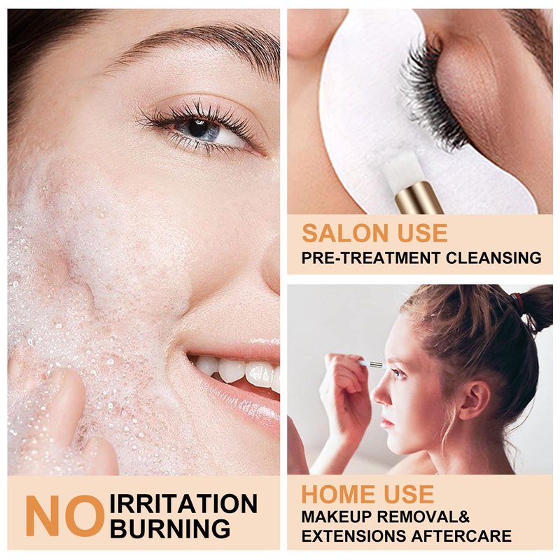 - 【Water-Based Oil-Free Formula】: Our gentle water-based lash extension cleaner is an oil-free formula. Sulfate-free, foaming cleanser for eyelash extensions will not strip natural lashes or skin of moisture, 100% vegan and trusted by professional hairdressers.