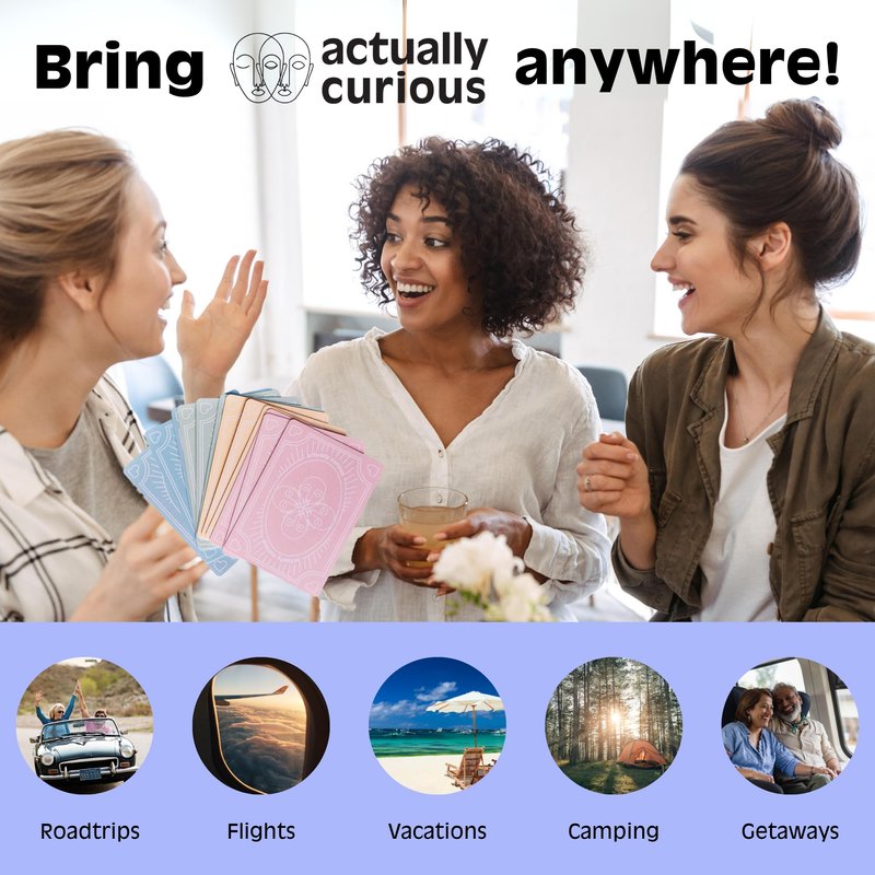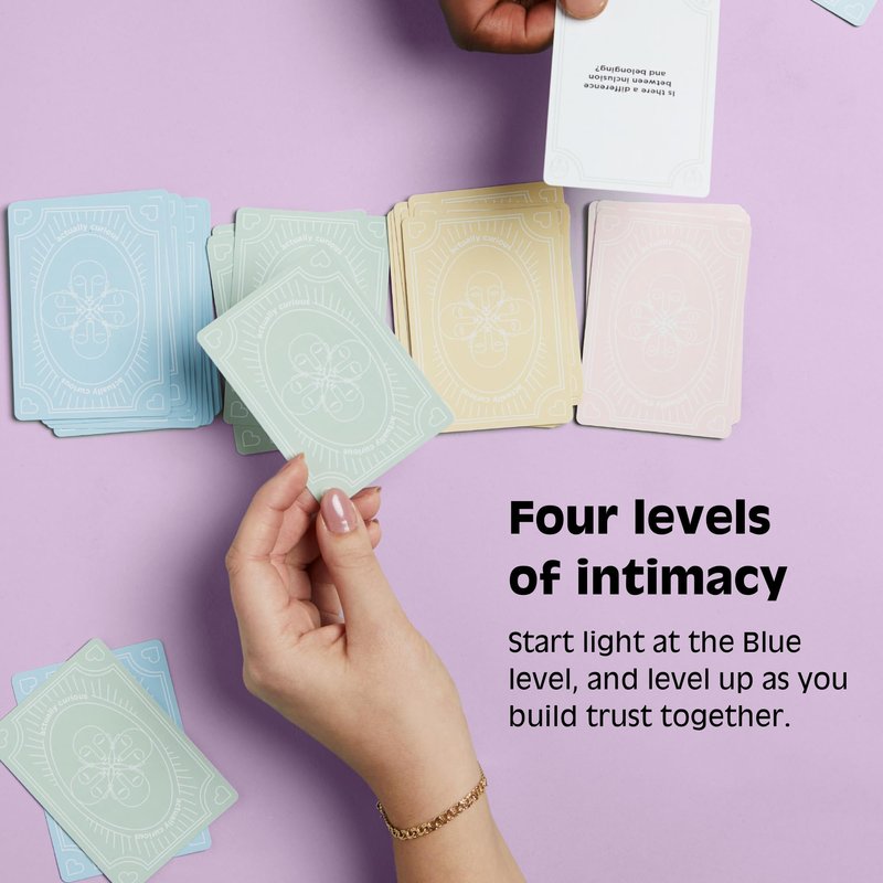 Actually Curious is a party game that builds connections through meaningful questions. Actually Curious is the only party game that uses the science and psychology of emotional connection. The blue cards are the easiest to ask a room of strangers. You work your way up to the intimate red cards! This game isn’t about winning or losing. Actually Curious is about getting past small talk and building meaningful connection. Dive into meaningful connections with Actually Curious, the party game designed for building empathy and understanding. Beyond a game, it's an experience in human connection using the science of emotional bonding. Perfect for family game night, classrooms, and diversity discussions, Actually Curious is your key to deeper conversations. Awarded and featured in The New York Times, NBC Today, and Forbes, the Original Curiosity Edition is the ultimate conversation starter. Whether at a party or a classroom, it promotes emotional intelligence, critical thinking, and inclusivity. How to play? Simple! Great for friends, family, teens, or co-workers. Read a question, listen without judgment, and award points to the answers that move you. It's not about winning or losing; it's about fostering connection. Beautifully designed with 15 blue, 17 green, 12 yellow, and 8 pink cards, our pocket-sized box fits seamlessly into your life. Ideal for gatherings, dinner parties, ladies' nights, or date nights, Actually Curious adds a touch of mindfulness and trust. Prioritize mental health with the Curiosity Edition. Use it for critical thinking, team building, and diversity discussions. The color-coded questions guide you from light ice-breakers to deep, thought-provoking conversations. Join the movement to spread empathy! Forbes recognizes Actually Curious for building empathy through the science of emotional connection. As Men's Health's most fun stocking stuffer, it's a literal conversation piece that sparks deep and memorable discussions.