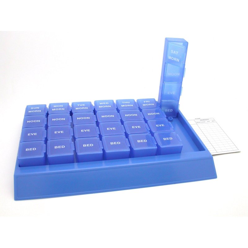 Acu-Life Weekly (7-Day) Pill Case, Medicine Planner, Vitamin Organizer, Pop-Out Compartments, 4 Times a Day, Easy to Use, Color May Vary, BPA Free