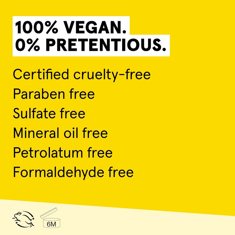 - Vegan and certified cruelty-free. Also Paraben free, Sulfate free, Mineral oil free, Petrolatum free and Formaldehyde free