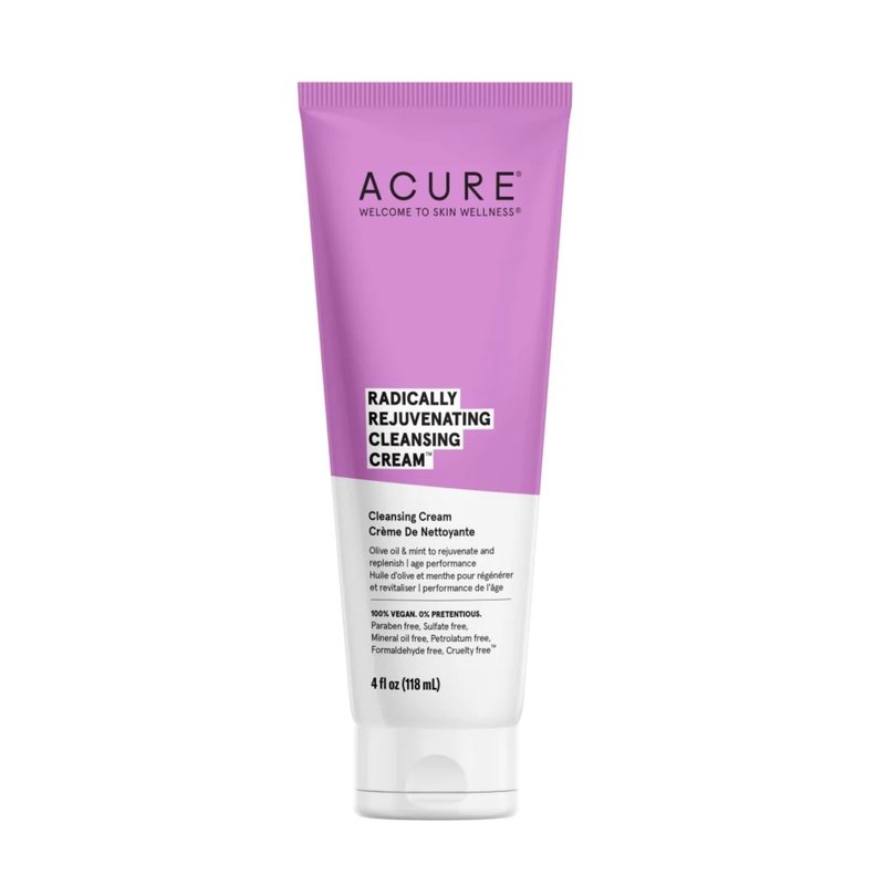 Acure Radically Rejuvenating Cleansing Cream - Foaming Creamy Facial Cleanser - Moisturizing Benefits of Olive Oil, Cocoa Butter and the Soothing Deep Cleanse of Mint - 4 oz