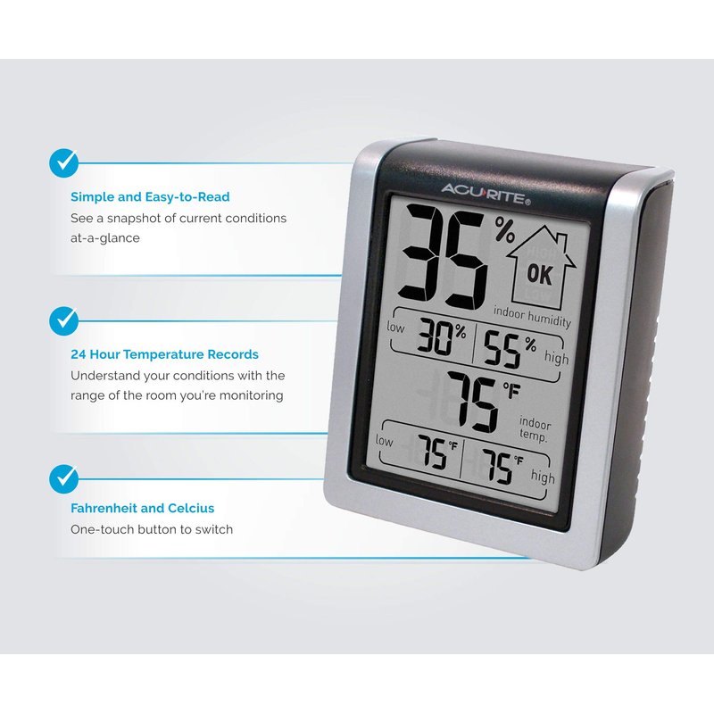 AcuRite 00613 Digital Hygrometer & Indoor Thermometer Pre-Calibrated Humidity Gauge, 3" H x 2.5" W x 1.3" D, Black