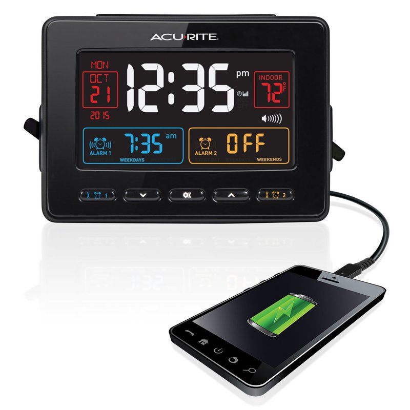 AcuRite 13024 Atomic Dual Alarm Clock with USB Charging, Black