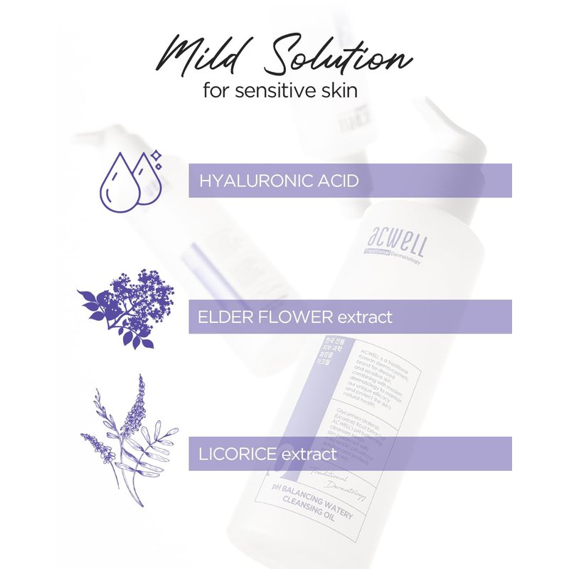 - NON-FOAMING BUBBLE-FREE CLEANSING GEL: Acwell pH Balancing Bubble-Free Cleansing Gel is enriched with 8 types of Hyaluronic Acid, Elder Flower Extract and Licorice Extract. This aqua formula helps to calm irritated and sensitive skin while deep cleansing the impurities from the pores.