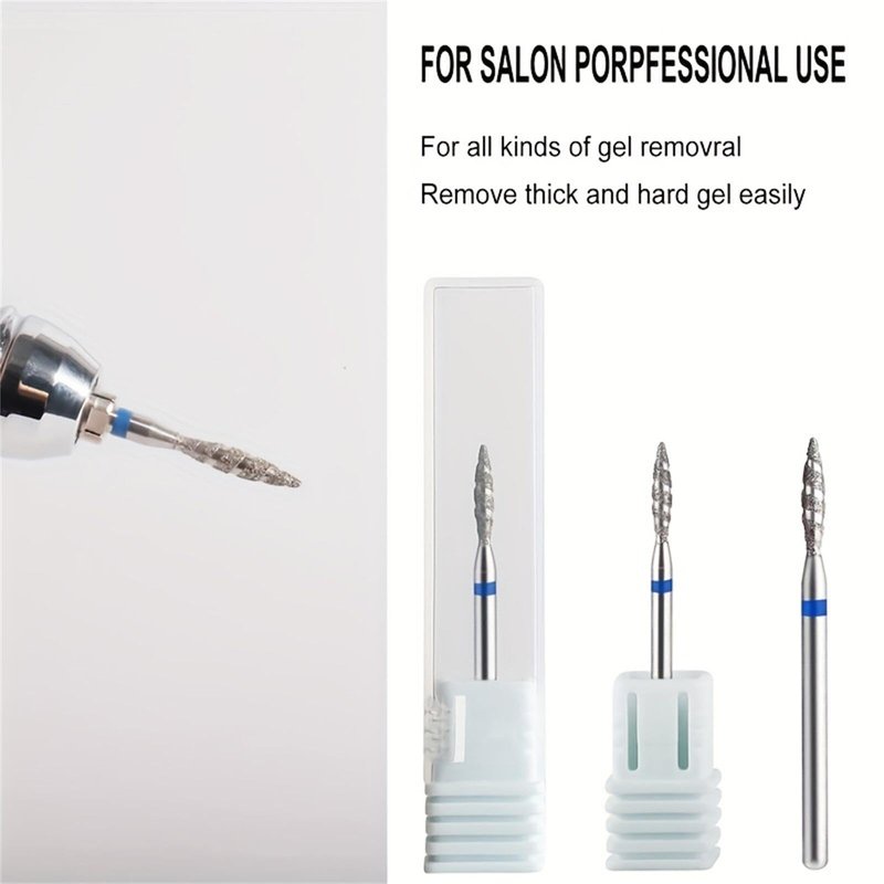 Acycoin2A 2PCS Tornado Flame Diamond Nail Drill Bit 3/32" Manicure Cutters Rotary Burr Drill Accessories Spiral Nail Mills Tool (Model D)