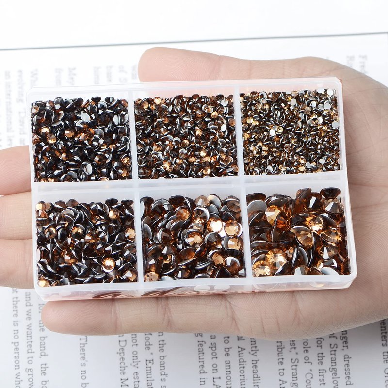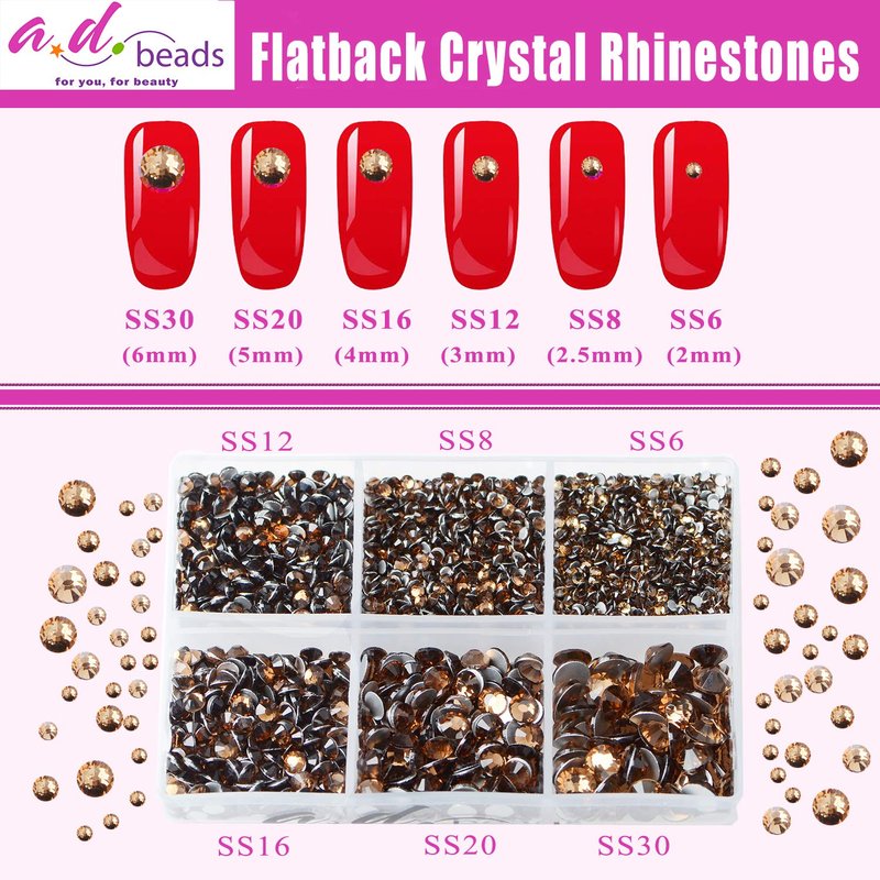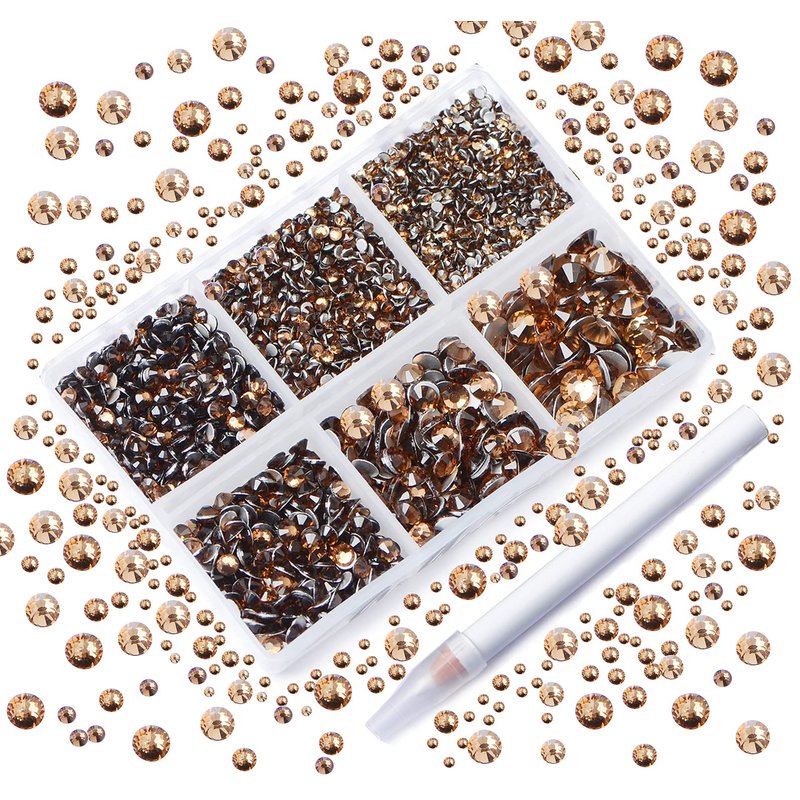 AD Beads 4300 Pieces Flat Back Nail Art Rhinestones Round Beads 6 Sizes (2-6.5mm) with Storage Organizer Box,Rhinestones Picking Pen for Nail Art Phone Decorations Crafts DIY (Smoked Topaz)