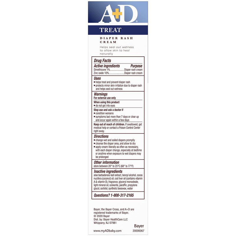 A+D Zinc Oxide Diaper Rash Cream with Aloe 4 oz (113 g)(pack of 2)