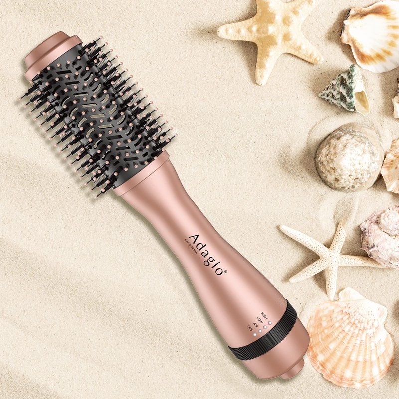 Adagio California Blowout Brush: 2-in-1 Hot Air Brush Styler and Dryer - Negative Ion Round Brush - Hair Dryer Brush with Straightener Function - Hair Styling Tools for Women… (2-inch, Rose Gold)