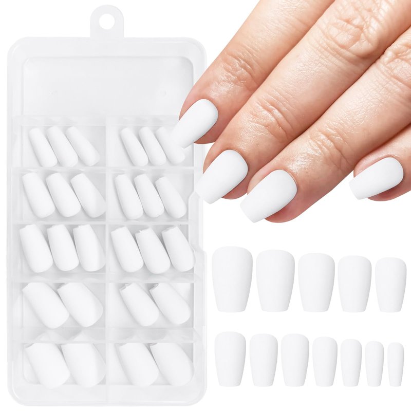 - Save your time to design: Matte white fake nails feature a solid color ballerina style design, short press on nails coffin nails designed with classic white nails, full cover, matte finished, ballet shape, short length press on nails, it will give you a fashion coffin design nails. The short nails allow you to do everything you normally would, such as typing, working, gardening, and house-working. The color and pattern won’t peel off
