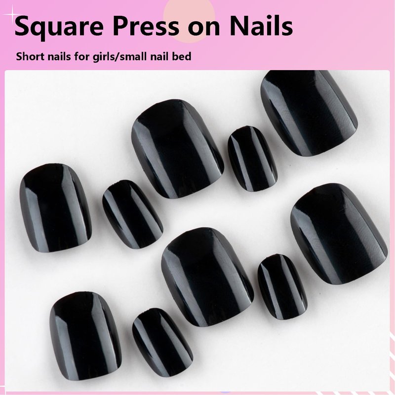 Summer nails short glossy square press on nails for women and girls diy nail art Color: black nails press on