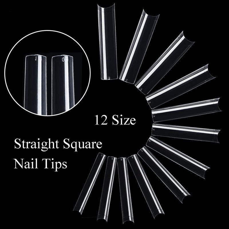 - Long tapered square nail tips for gel polish acrylic nails: clear half coverage long coffin fake nail tips are easy to use, just trim and polish your natural nails, apply glue on the back of the false nails, move along the nails to the bottom of the nails, and then press firmly on the nails about 10 seconds. After the nails are firmly fixed on the nails you can make DIY creations