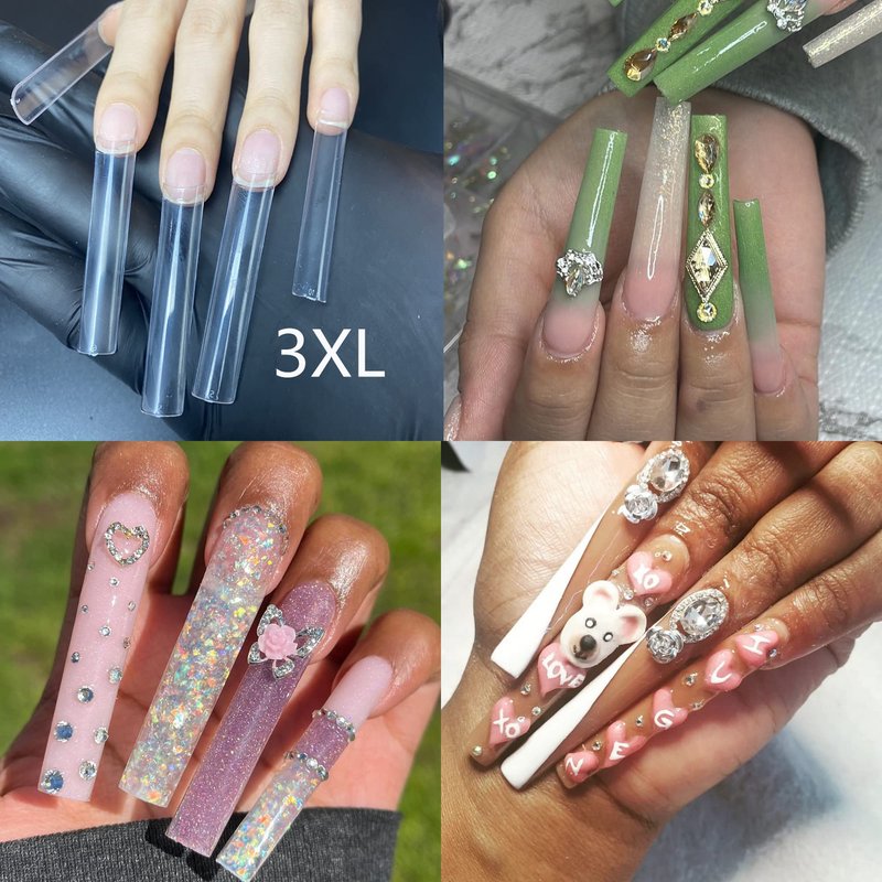 - 3XL Clear nail tips for acrylic nails professional, will come with 600pcs/bag long Square Straight Nail Tips, xxxl half cover design, these fake nails are made of high-quality materials, with a certain thickness, strong and durable, not easy to break/deform/bend. Can wear 1-2 weeks