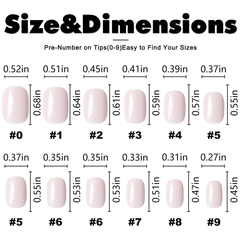 - Short length artificial press on nails: with great variety of sizes for women and girls. short fake nails are numbered from 0-9 and easy to keep track of, and convenient to choose the most suitable size that fits your every finger, whatever you have small hand or narrow flat nail bed. Press-on nail art is an excellent choice for home nail care