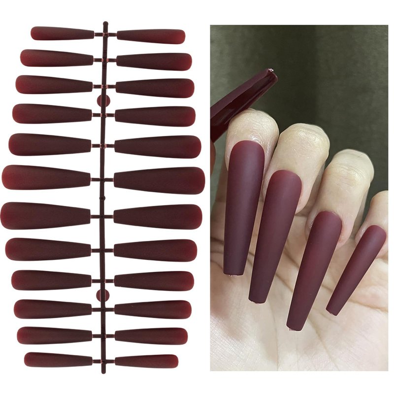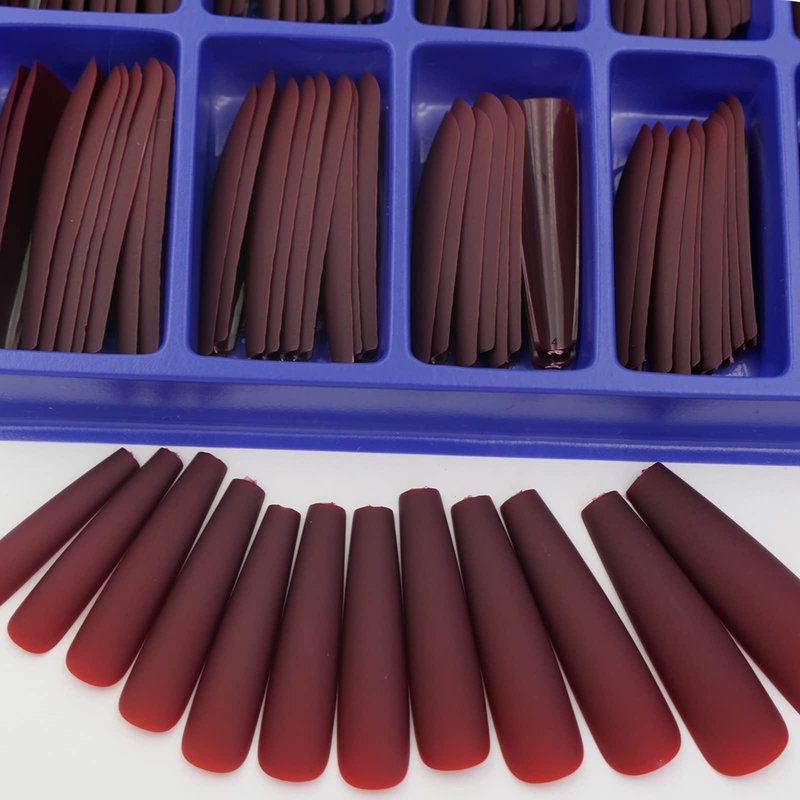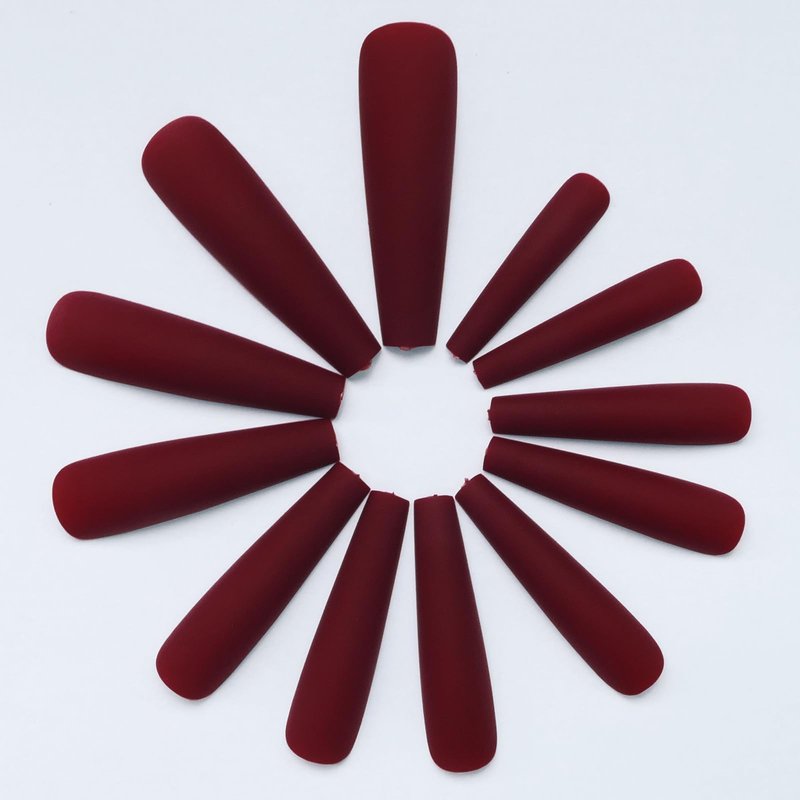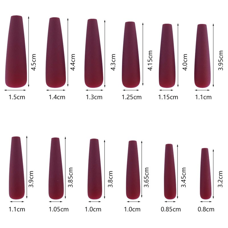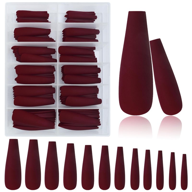 - Extra Long Press on Nails: 120pcs/pack in 12 sizes burgundy press on nails, super long matte ballerina design will make you nails more elegant and stylish. and our false nails are made with higher-quality plastic that durable, sturdy, and last much longer