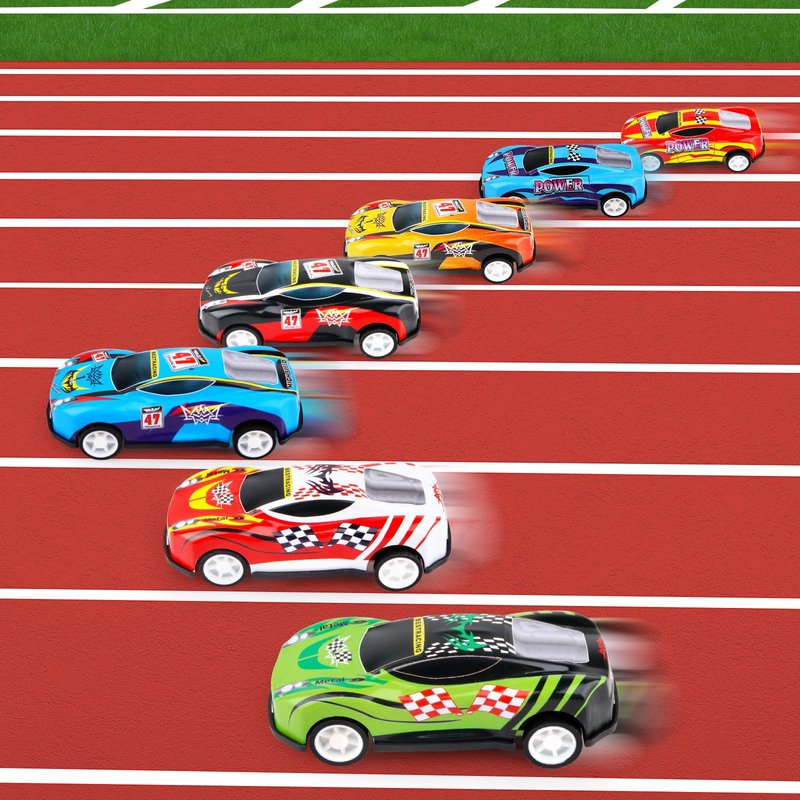- 🏎Size Details: Each toy is about 2.6 inches, easy for kids to grip. Stimulate your child's curiosity and imagination, help develop fine motor skills and hand-eye coordination, these mini racing cars are very portable and can be carried in your pocket or bag as a complete travel toy. Kids can play with them anywhere and anytime