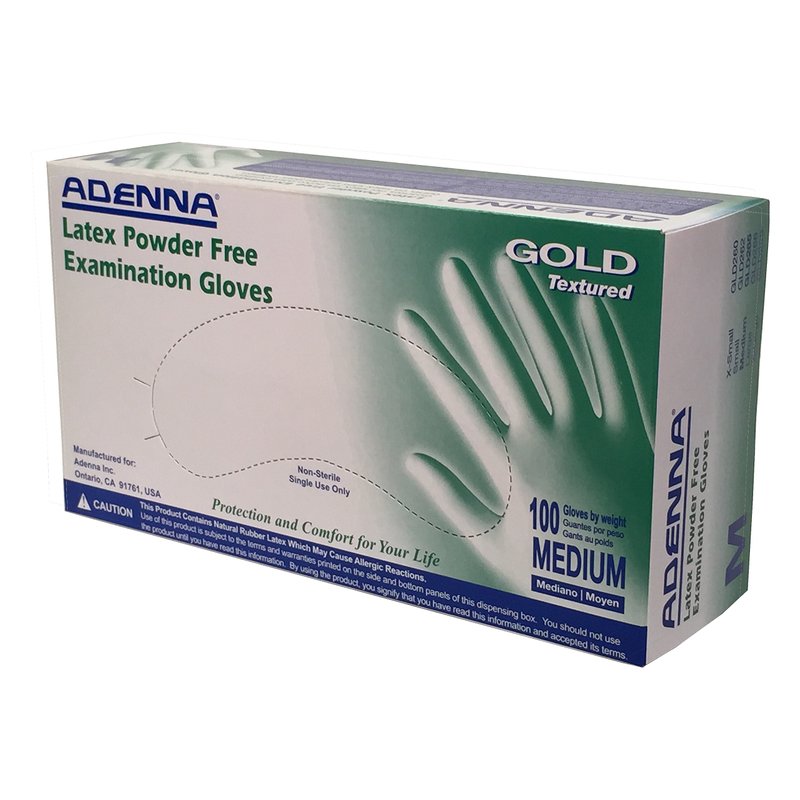 Adenna GLD265 Gold 6 mil Powder-Free Latex Gloves, Medical Grade, White, Medium, Box of 100