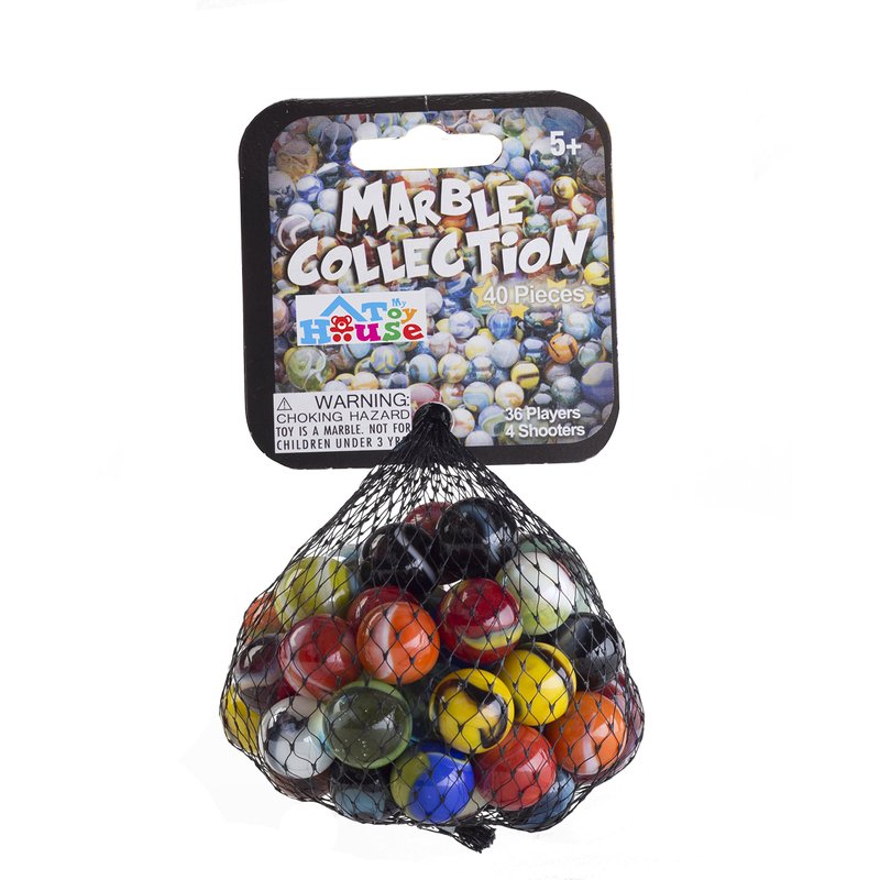 Ader Products My Toy House Glass Marbles Bulk, Set of 40, (36 Players and 4 Shooters) Assorted Colors, with Game Marbles Rules