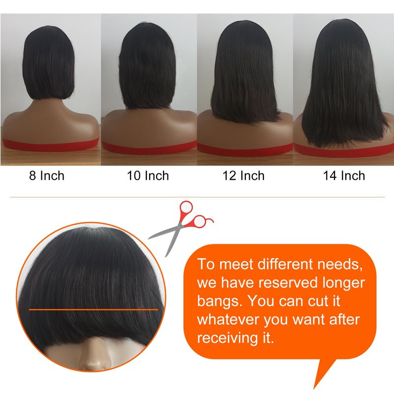 - Hair Material: Our Brazilian straight human hair short bob wigs with bangs are made from 100% unprocessed hair, sourced from young donors. These glueless machine-made wigs are non lace front and have a density of 150%, perfect for black women.