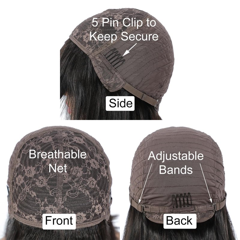 - Wig Cap: Our wigs come in a medium cap size of 21-22.5 inches, which is the average size. They are equipped with combs and adjustment straps that can be intertwined to secure the wig in place and can be adjusted to fit different head sizes.