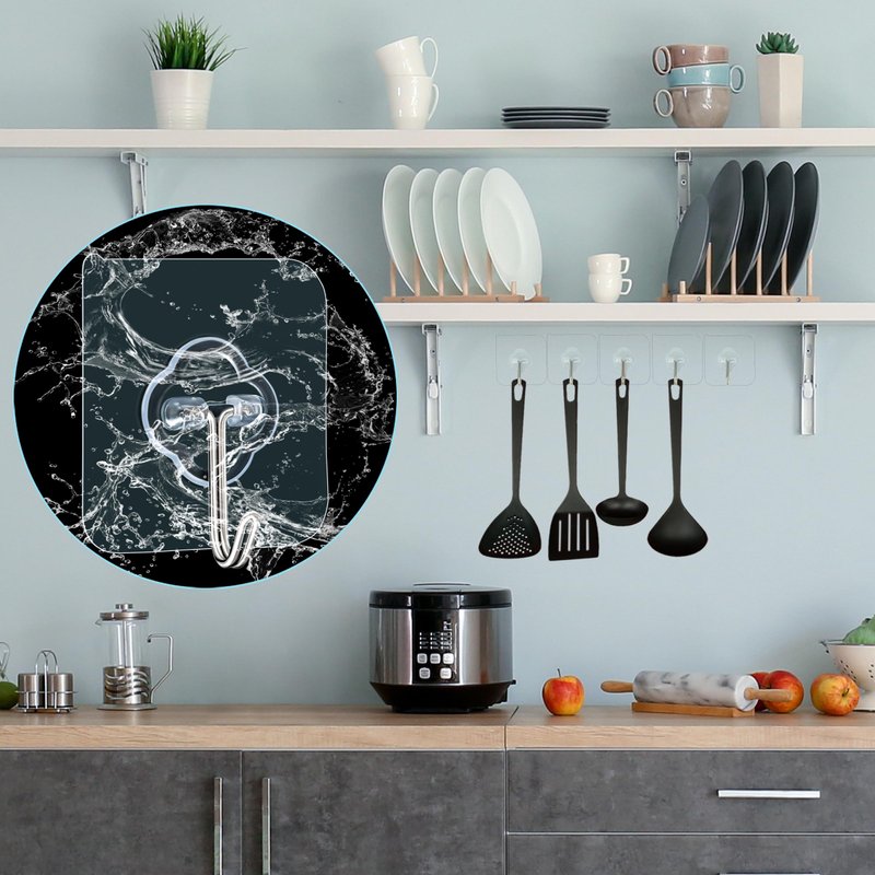 - Wide Use: Removable hooks for hanging can be securely attached to a variety of surfaces, including table tops, glass, tiles, metal, ceilings and other smooth surfaces, please note that painted walls are not suitable for clear wire hooks. These adhesive hooks for hanging can be used in living room, kitchen, bathroom, behind door, holiday decoration, etc.