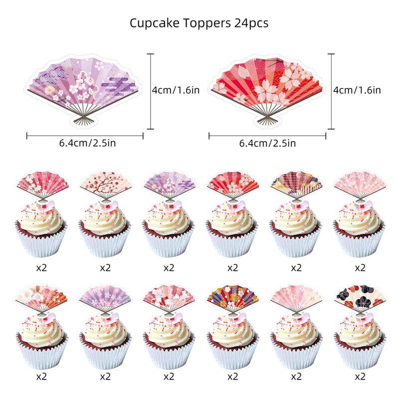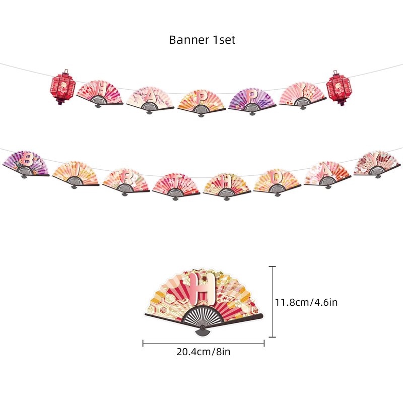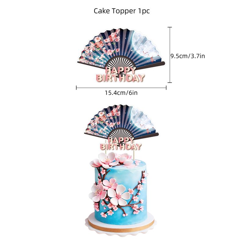 - Complete ADIANZI Japanese Birthday Decorations kit--1 HAPPY BIRTHDAY banner, 1 cake topper, 4 folding fans hanging swirls, 24 cupcake toppers, 18 balloons.ADIANZI Japanese party decorations brings surprises to your party.