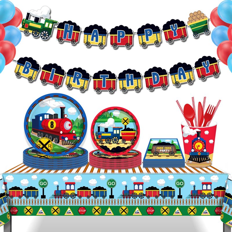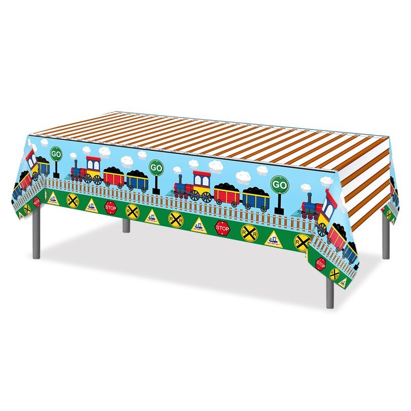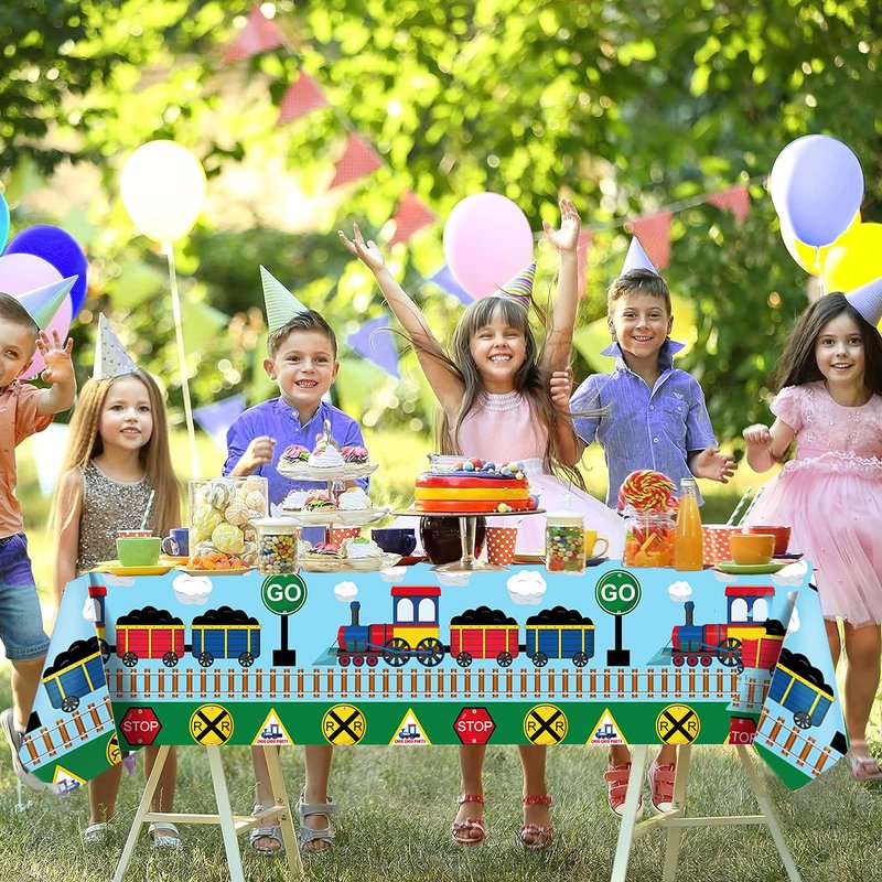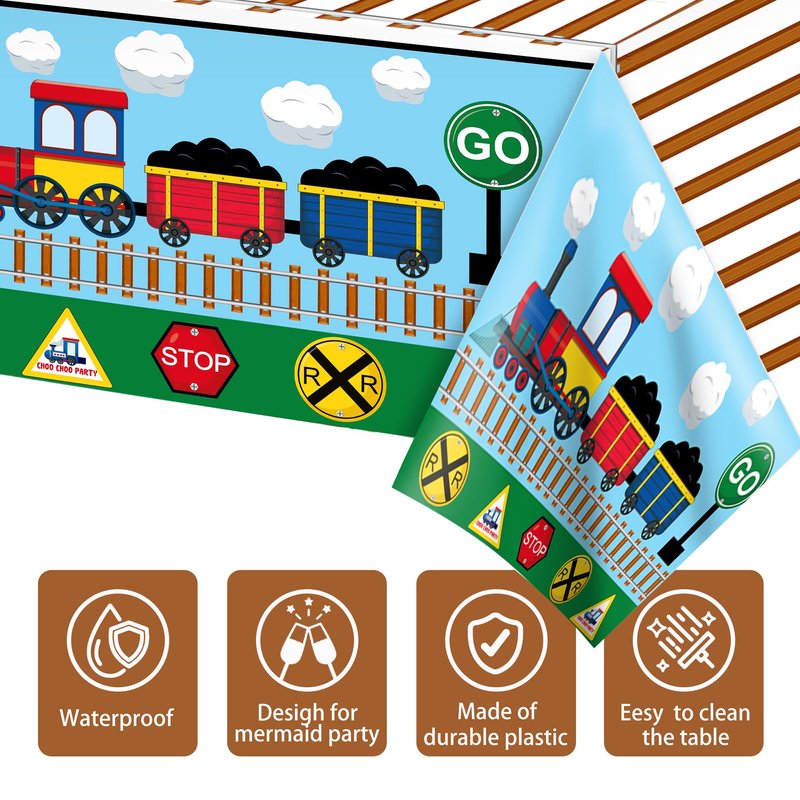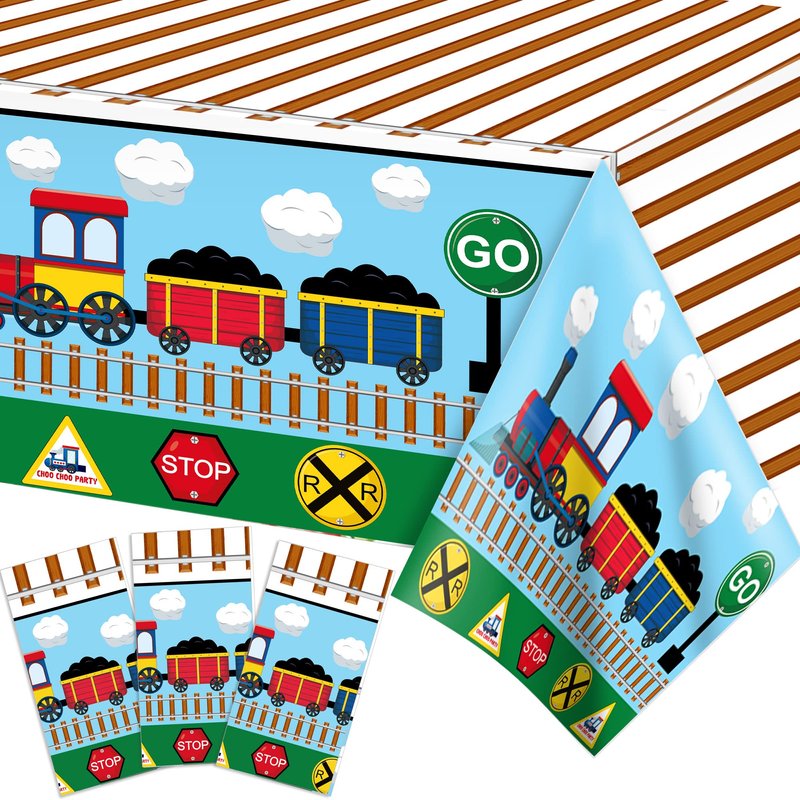 Adirasenotek 3Pcs Freight Train Party Tablecloths,Train 87" Lx51 W Rectangular Plastic Table Covers,Kids' Party Disposable Tablecloths for Decoration,Birthday Party,Baby Showers