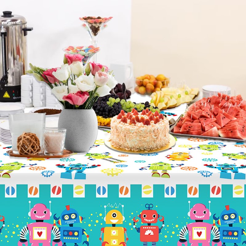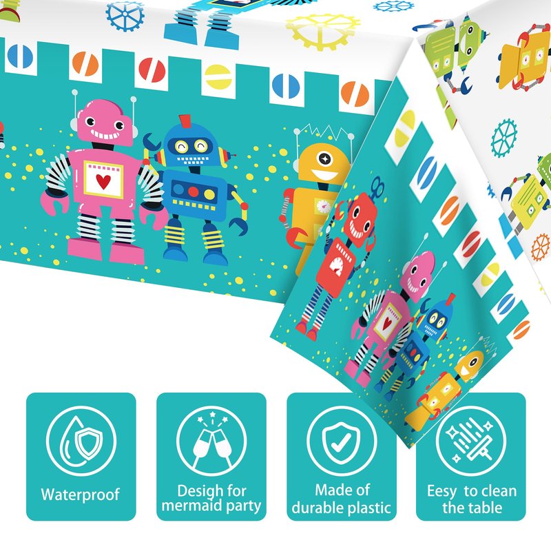 Adirasenotek 3Pcs Robots Tablecloths, 87" Lx51 W Rectangular Plastic Table Covers,Kids' Party Disposable Tablecloths for Decoration,Birthday Party,Baby Showers
