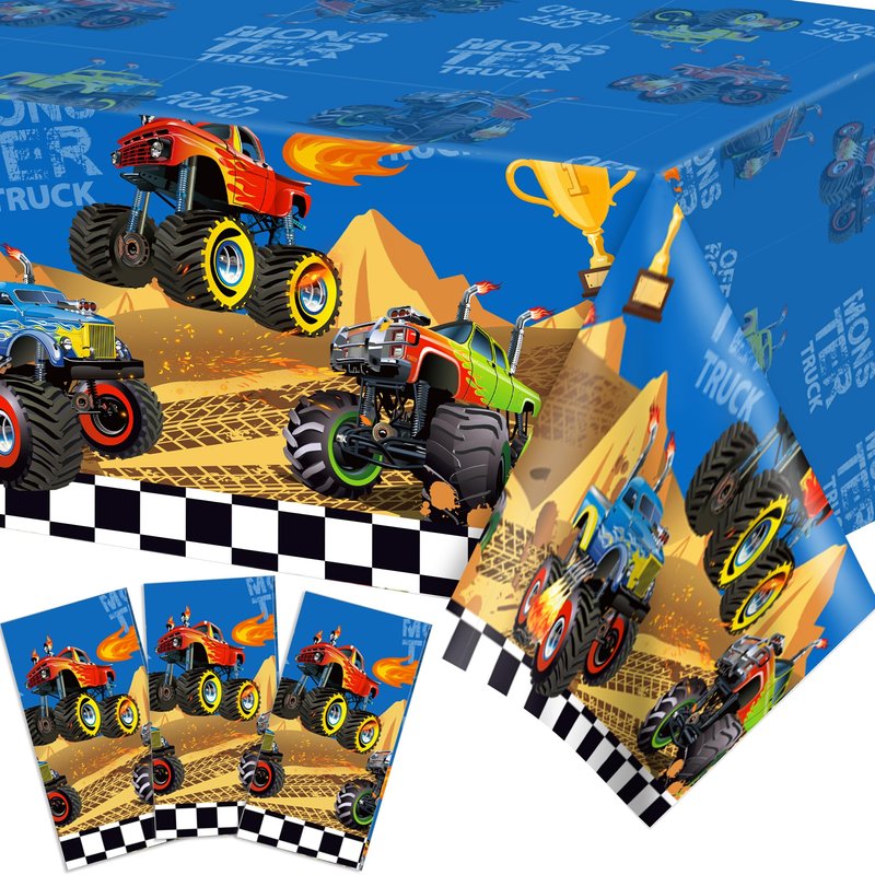 Adirasenotek 3Pcs Trucks Plastic Party Tablecloths for Party Decoration,87" Lx54 W Rectangular Plastic Table Covers,Kids' Party Disposable Tablecloths for Decoration,Birthday Party,Baby Showers