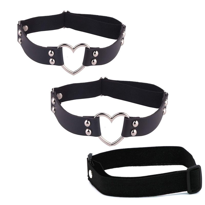 Adjustable Elasticity Leg Harness Garter Belts Punk Gothic Thigh Ring Garter (2 pcs Black Heart)