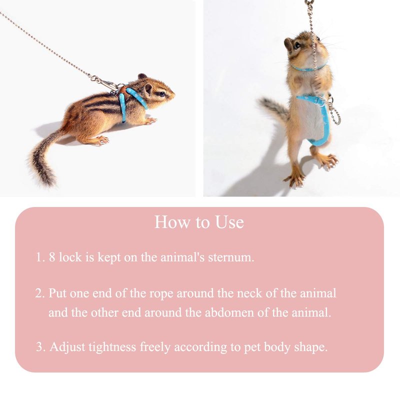Adjustable Leash Harness with Bell for Rat Mouse Squirrel Guinea Pig Walking Training (Pink)
