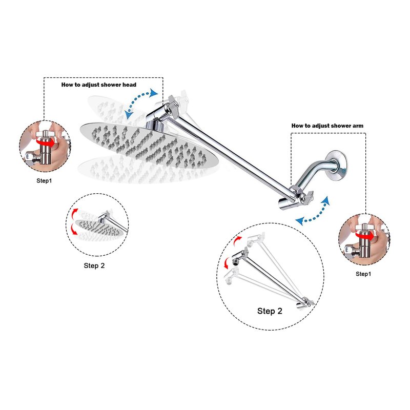 The NearMoon 11-inch Adjustable Shower Arm lets you adjust the height and angle of your rain shower head,