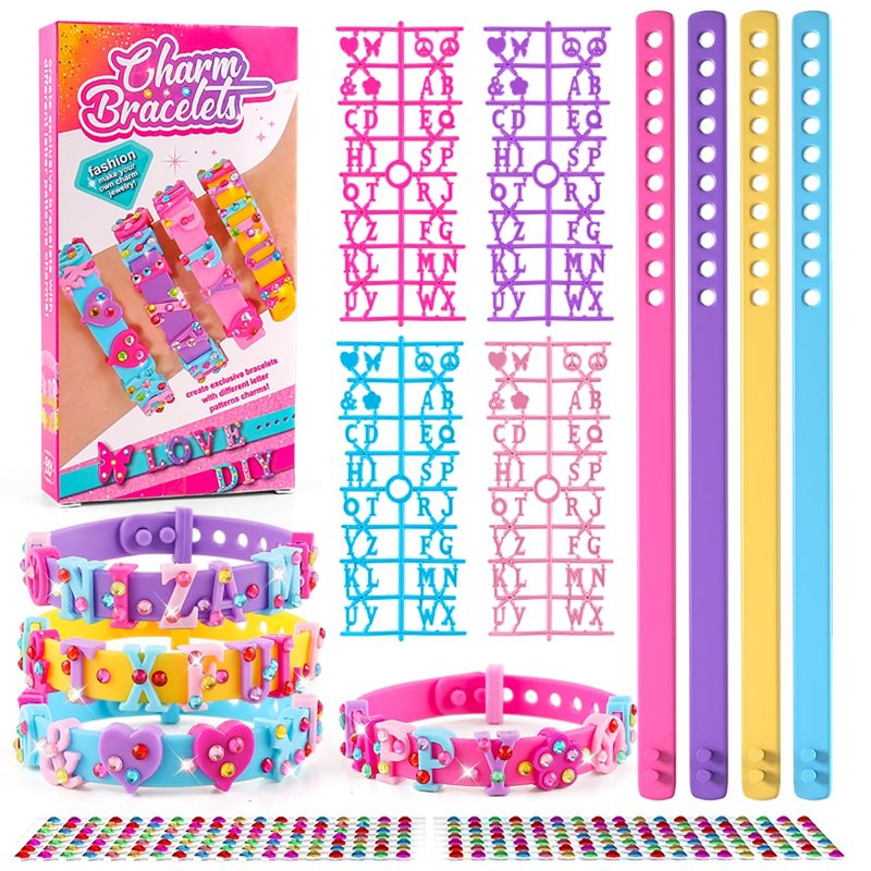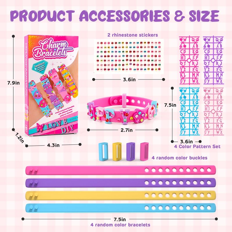 • Rich Accessories: 4 silicone bracelets in random colors with clasps. Features multi-colored letter, flower, heart patterns and sparkling stickers. Diverse styles and colors cater to all preferences. Kids can use their creativity and mix and match freely