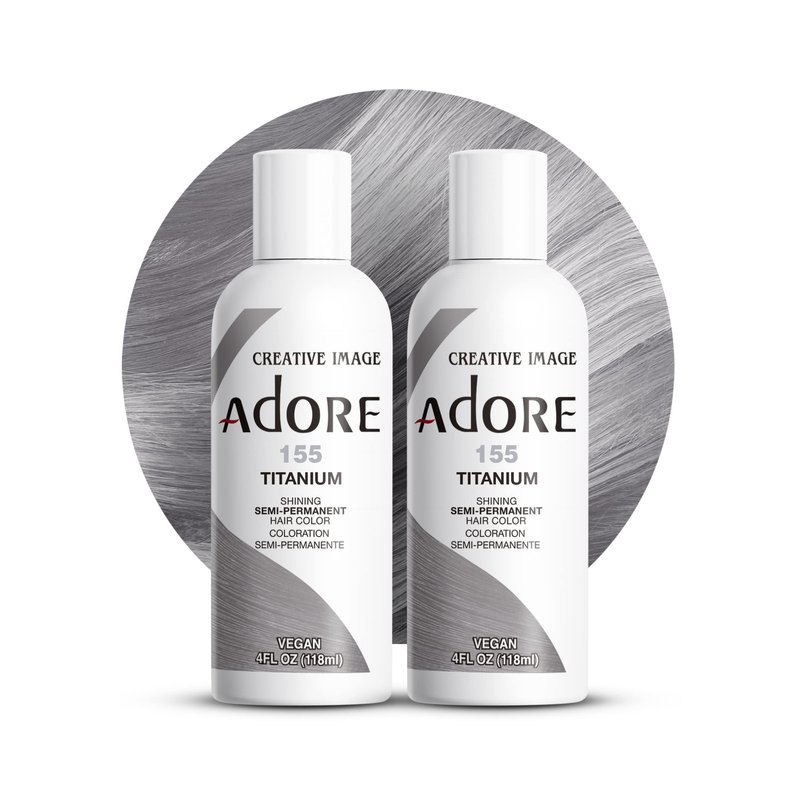 Adore Semi Permanent Hair Color - Vegan and Cruelty-Free Hair Dye - 4 Fl Oz - 155 Titanium (Pack of 2)