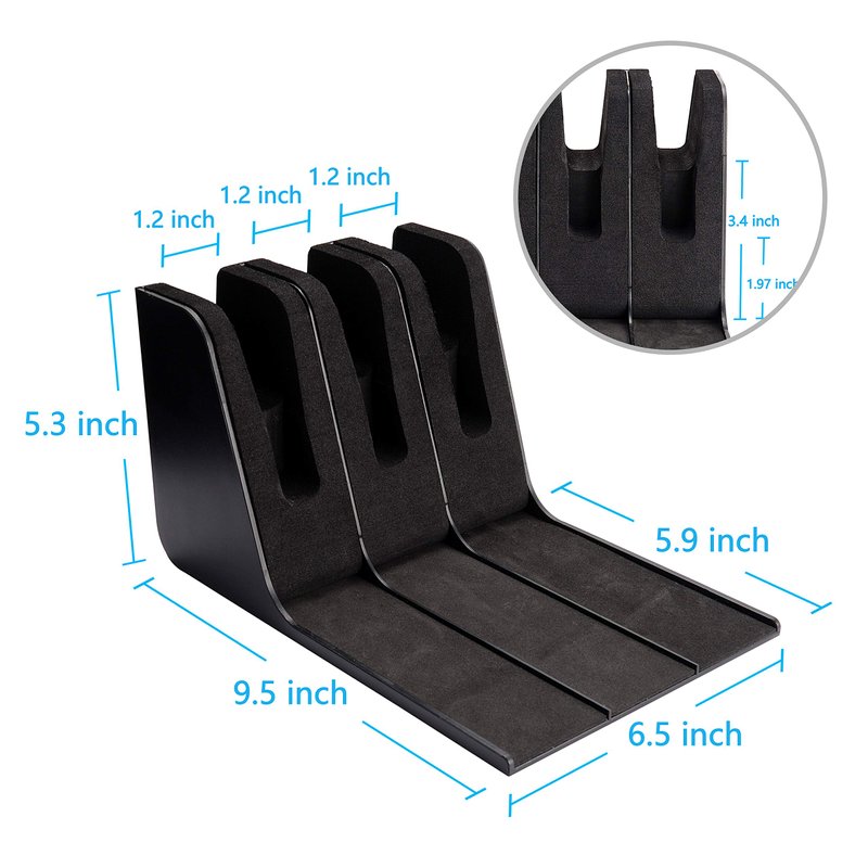 - Overall dimension of the 3 pistol storage rack :9.5”Lx6.5”Wx5.3”H . It doesn't take a lot of space. Great space saver.