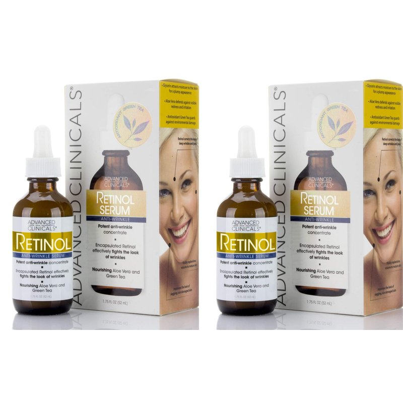 Advanced Clinicals Retinol Facial Serum Moisturizer Skin Care For Face, Anti Aging Retinol Concentrate Reduces Appearance Of Wrinkles & Fine Lines W/Aloe Vera & Green Tea, 1.75 Fl Oz (Pack of 2)