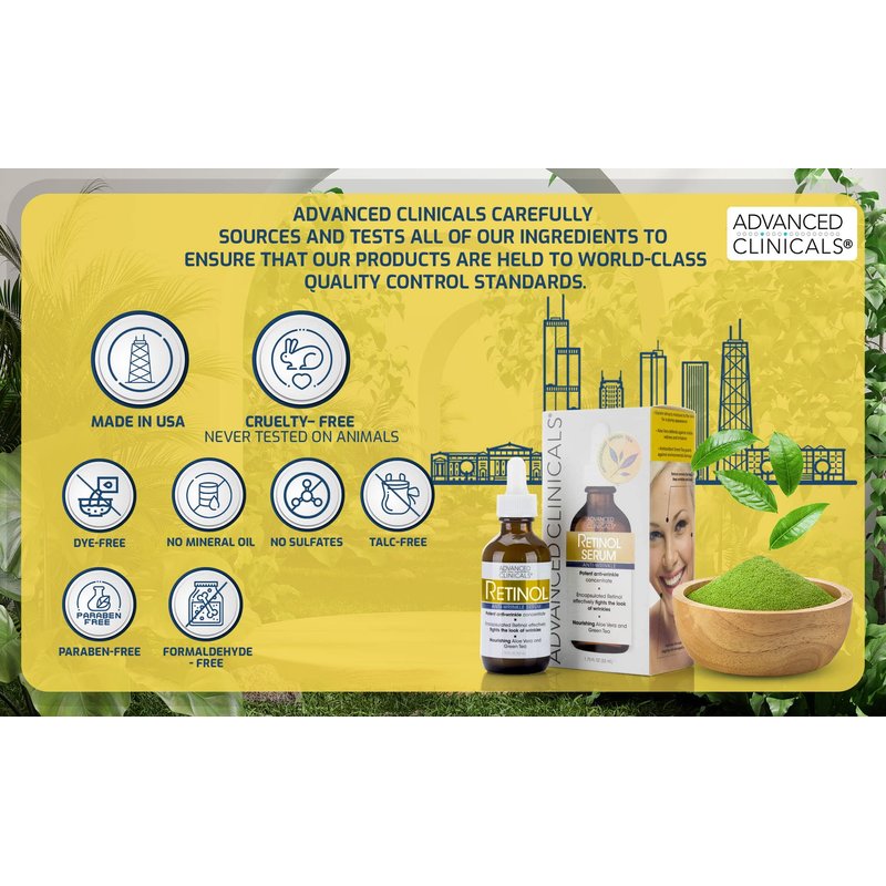 - RELAX, FIRM, & RESTORE – Dermatologist-Tested, Clinically-Tested, & Allergy-Tested Formula. Manufactured in our FDA-Regulated & Inspected Laboratory in Chicago, USA. If for any reason you decide this Advanced Clinicals Retinol Serum isn't a fit for your skin, we're here for you. Each purposefully balanced medley of key antioxidants, super-nutrients, & nourishing botanical actives enhance efficacy & delivers long lasting skin-friendly benefits, without harmful additives or fragrances.