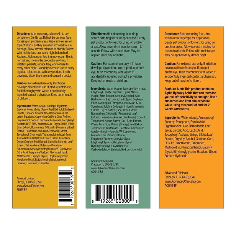- Advanced Clinicals face serum set with Collagen, Retinol, and Vitamin C has all your aging concerns covered! Retinol serum, made with Vitamin A (the #1 anti-aging ingredient recommended by Dermatologist helps fight off wrinkles. Collagen helps plump dull skin and improves skin elasticity. Vitamin C helps with age spots, uneven skin tone, and expression lines.