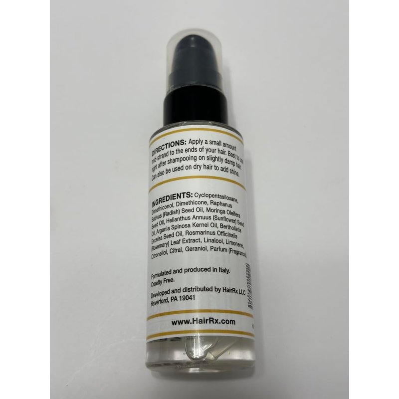 Unlock the secret to luscious, healthy locks with HairRx Professional Nourishing Oil. This advanced hair care formula is designed to tame frizz, add weightless shine, and repair damaged strands. Infused with nourishing ingredients, it deeply moisturizes your tresses, leaving them silky smooth and radiant. Color-safe, this versatile oil can be used as a styling aid, pre-shampoo treatment, or overnight mask. With its lightweight texture, it won't weigh your hair down. Experience the transformative power of HairRx Professional Nourishing Oil and embrace your most beautiful, vibrant hair yet. Size: 3.4 fl oz (100 mL).