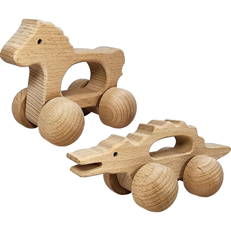 This wooden toy set is a delightful addition to any child's playtime. Crafted from high-quality wood, it features a charming horse and alligator or crocodile design that rolls smoothly on wheels, providing endless hours of imaginative fun. The natural wood and whimsical shapes captivate young minds, encouraging creativity and cognitive development. As a rattle toy, it also stimulates auditory senses, making it an excellent choice for toddlers. Each measuring approximately 4 inches (10 cm) in length, this toy is the perfect size for little hands to grasp and explore. Designed with safety in mind, it's free from harmful chemicals and features rounded edges for added security. Whether at home or on-the-go, this wooden horse and crocodile wheeled baby toddler rattle toy set is sure to become a cherished companion for your little one.
