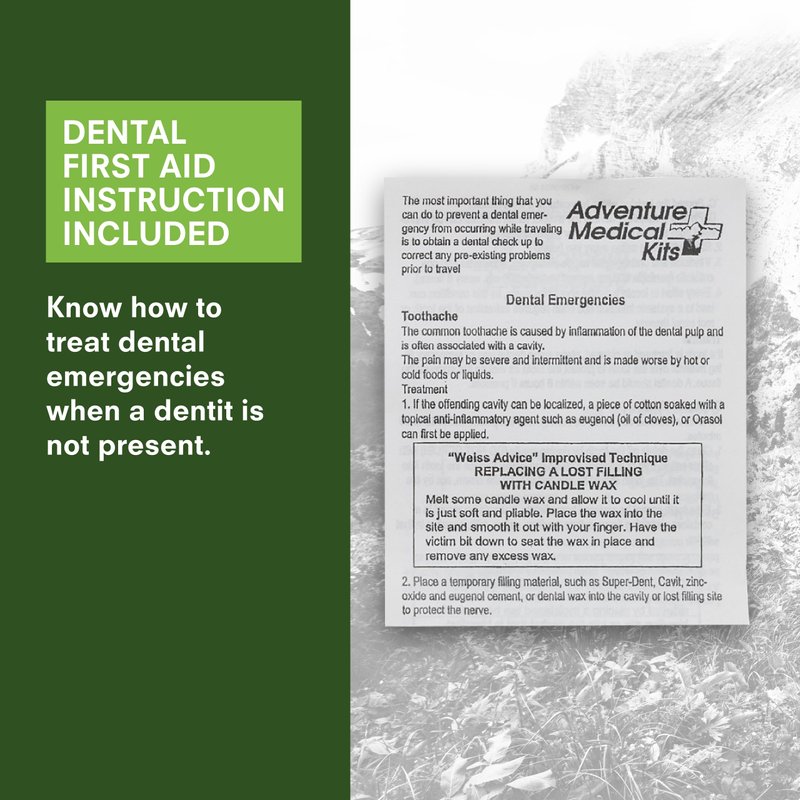 - The Adventure Medical Kits Dental Medic contains basic supplies like floss, cotton, and anesthetic